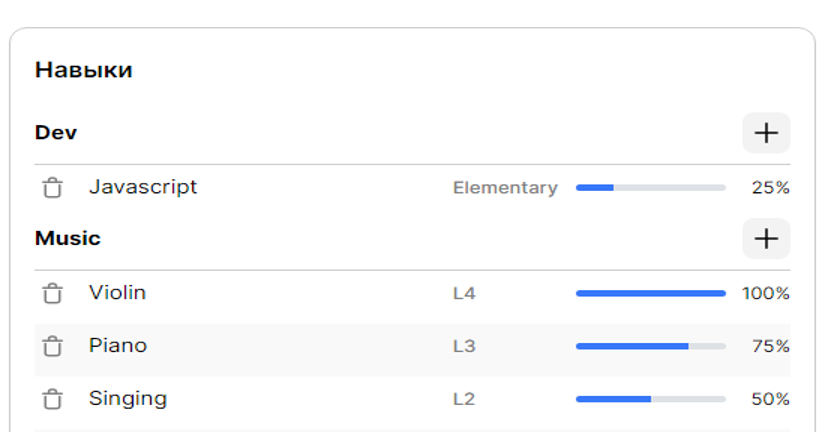 Для каждого сотрудника доступно резюме, образование и навыки, что позволяет найти того кто нужен под ваши задачи.